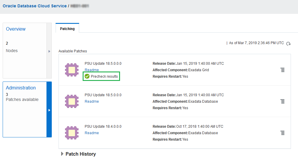 I am now exploring the brand new Grid Infrastructure patching method for Exadata Cloud at Customer. With Exadata Cloud at Customer version 18.1.4.4, it is now possible to patch Grid Infrastructure with a few clicks in the GUI. Let’s see exactly which steps are performed.